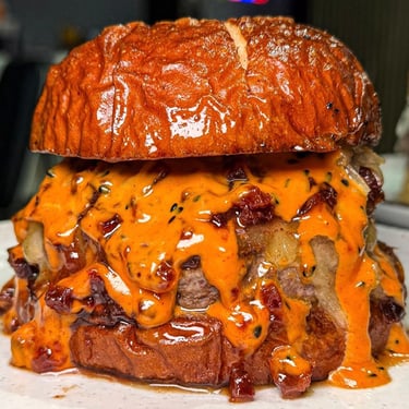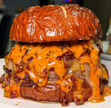 Segunda versión de nuestra Emmy la cual tras nuestro último viaje a NY hemos perfeccionado para recrear su sabor más icónico pero con nuestra carne Rubia Gallega Dry Aged y auténtico pan Pretzel receta PROPIA