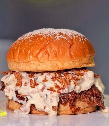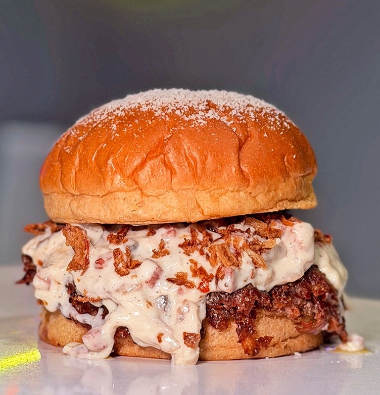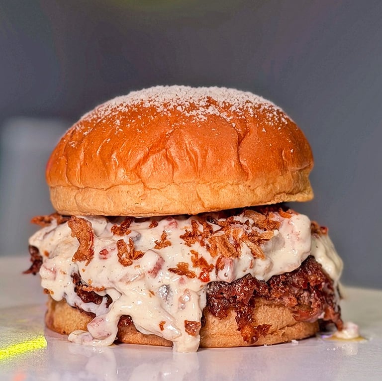Con esta mezcla de carbonara italo española hemos creado esta locura de burger