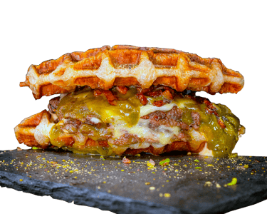 Como siempre, utilizamos nuestro pan propio, blend de carne Rubia Gallega Dry Aged y metemos un punch de intensidad con el Queso payoyo
